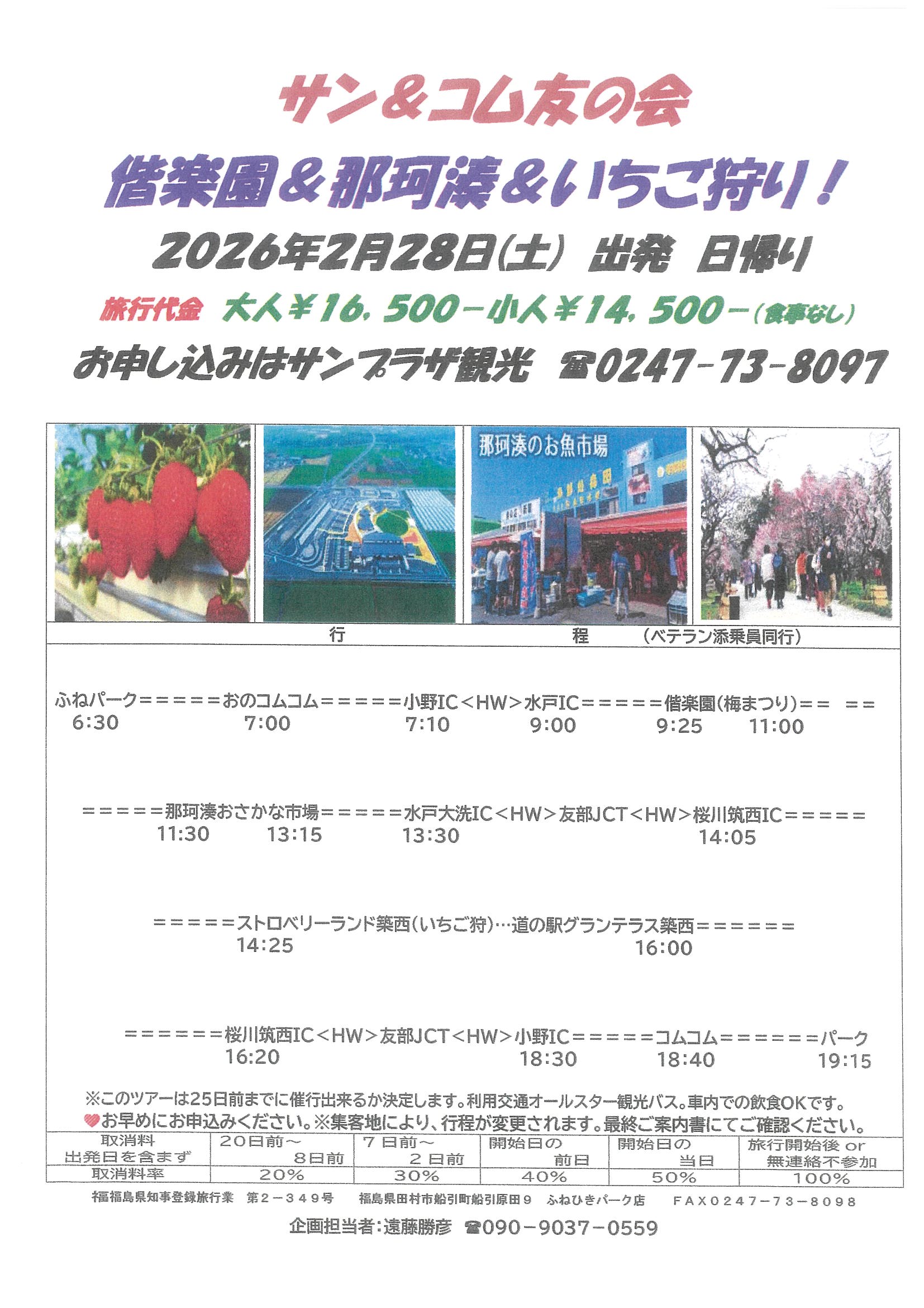お問い合わせは0247-73-8097 サンプラザ観光まで!