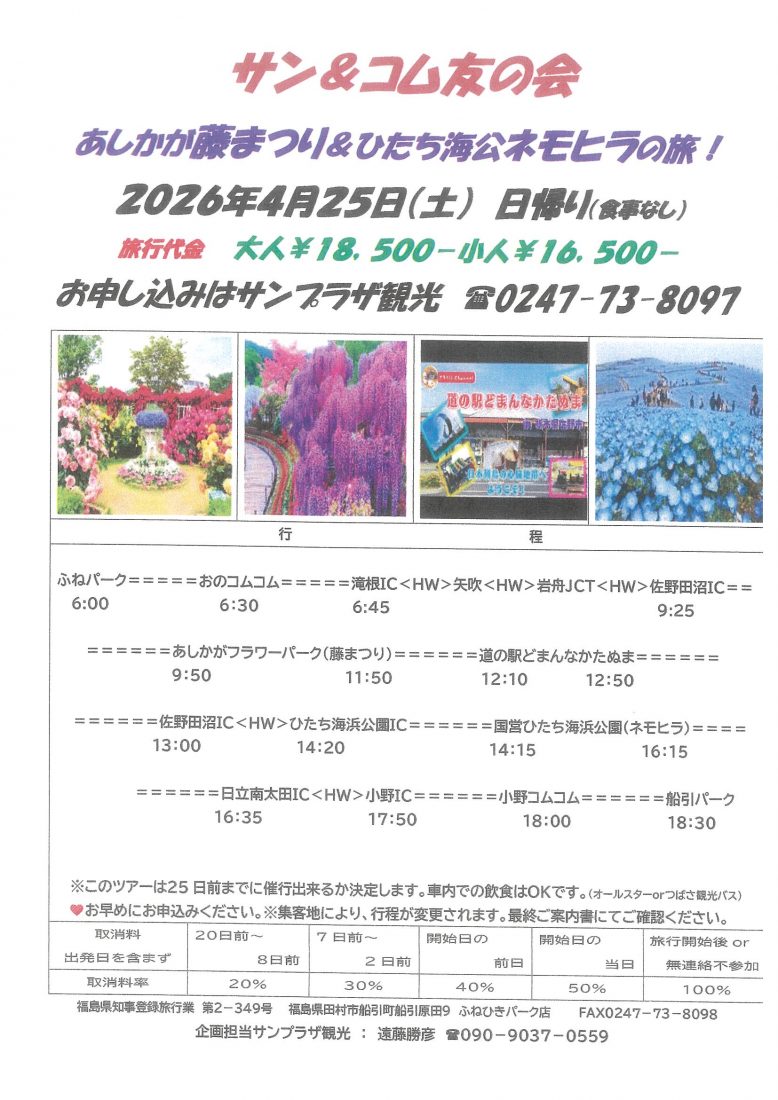 サンプラザ観光は福島県田村市【サンプラザふねひきパーク店】の旅行会社。